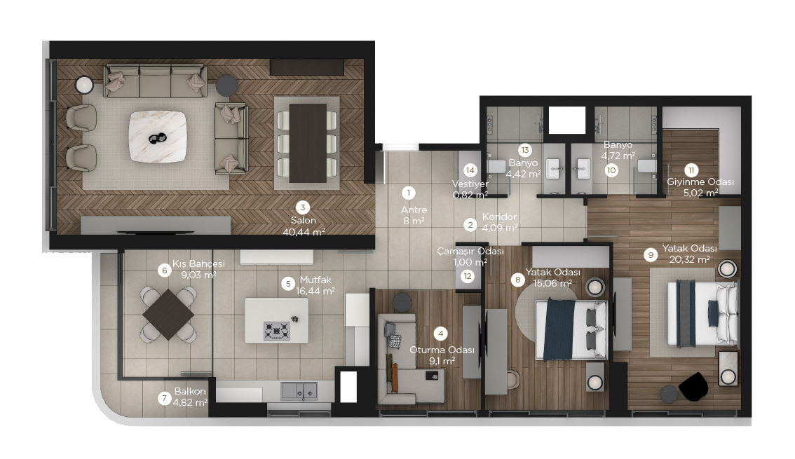 Her köşesini özenle ve hevesle dizayn ettiğimiz bu konutlara sahip olacak şanslı insanlar; umarız bizim tasarımını yaparken hissettiğimiz heyecanı ve huzuru evlerinde yaşarken uzun yıllar boyunca duyarlar